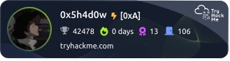 Hi! I go by 0x5h4d0w, and I'm a student passionate about cybersecurity (Red Team specifically). Whether its learning about network security, DevSecOps, web security, mobile security or any other new things, I'm always eager to go deeper and challenge myself.